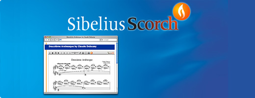 Sibelius Scorch is the amazing free web browser plug-in that lets you play, transpose, change instruments, save and print your Sibelius scores on the Internet. |