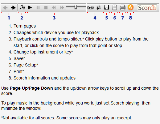 | Sibelius Scorch is the amazing free web browser plug-in that lets you play, transpose, change instruments, save and print your Sibelius scores on the Internet. |