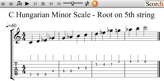 C Hungarian Minor Scale: