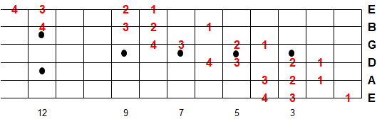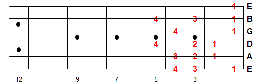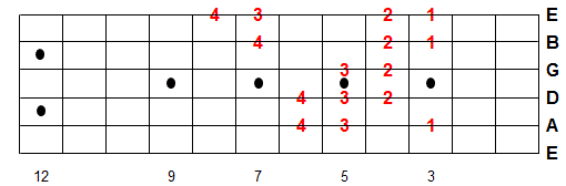 Once you memorize this fingering pattern you can reuse it by moving up or down the fretboard. Whatever note you start on is the 1st note of the scale.