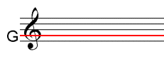 The Treble Clef is also called the G clef because the inner curve of the clef symbol marks the horizontal line, marked in red in the diagram below, associated with the note G above middle C. The Treble Clef is actually a stylised letter G.