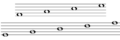 Notes outside the range covered by the lines and spaces of the staff are placed on, above or below shorter lines, called Leger Lines, which can be placed above or below the staff.