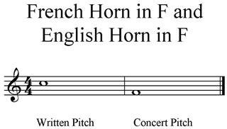 The French Horn in F and the English Horn both sound a Perfect 5th lower than written.