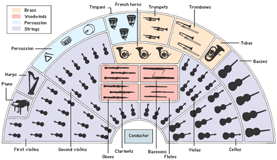 Depending on the size, the Orchestra contains almost all of the Standard Instruments in each Group. In the history of the Orchestra, its Instrumentation has been expanded over time, often agreed to have been standardized by the Classical period.